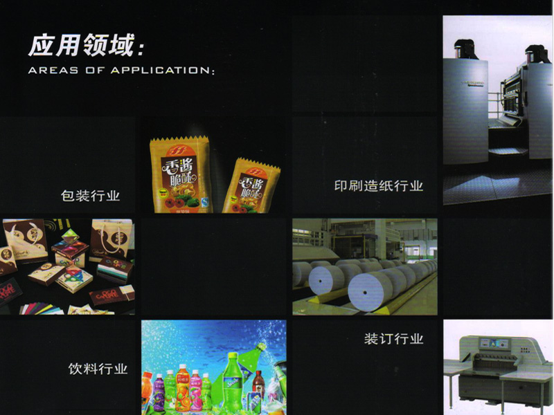 用于包装机械,塑料制品,食品行业(蔬菜,水果,肉类,牛轧糖,干果)以及其它产业;